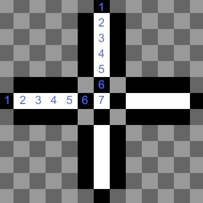 So for the crosshair cursor from the example, the middle would be 7 pixels from the left and 7 pixels from the top: